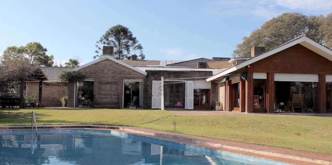 Casa en Carrasco Sur edificada toda en una planta. Gran terreno.Hall de entrada. Living y comedor separados. Estar con estufa a leña. Escritorio. Toilette. Cocina. 3 dormitorios, 1 de ellos en suite. Barbacoa integrada a la casa con grandes ventanales y parrillero. Fondo con piscina. Servicio completo.